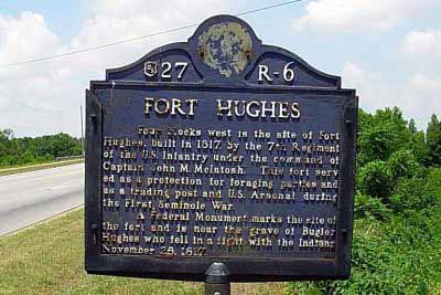 Four blocks west is the site of Fort Hughes, built in 1817, by the 7th Regiment of the U.S. Infantry under the command of Captain John M. McIntosh. This fort served as a protection for foraging parties and as a trading post and U.S. Arsenal during the First Seminole War.